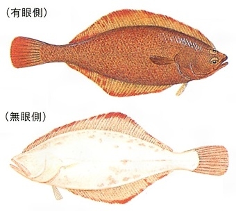 硬骨魚綱カレイ目カレイ科に属する海水魚。島根県および宮城県以北、樺太(からふと)(サハリン)、カムチャツカ半島までと、沿海州から朝鮮半島にかけて分布する。無眼側は内出血をしたように赤いことからこの名前がある。口は大きく、下眼の後縁まで開く。有眼側は一様に暗褐色で斑紋(はんもん)がない。
