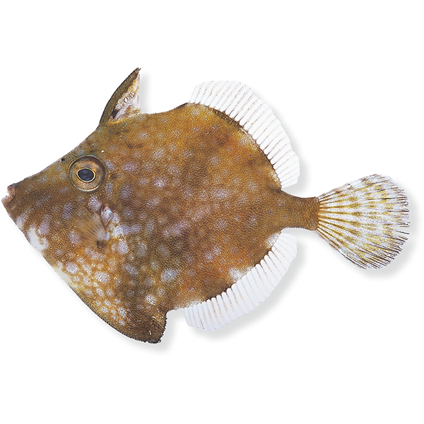 フグ目カワハギ科。体長 6cmになる小型種。体は円形に近く,側扁する。体色は帯黄褐色または灰緑色で,暗色の多角形の網目状斑紋がある。 20m以浅の岩礁や藻場,内湾の波止場付近などにすむ。駿河湾以南の日本,西太平洋,インド洋に分布する。