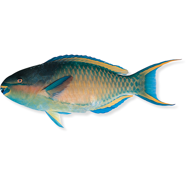硬骨魚綱スズキ目ブダイ科に属する海水魚。相模湾以南、南西諸島、小笠原(おがさわら)諸島、太平洋(ハワイを除く)、インド洋(紅海を除く)に分布する。前頭部は丸く飛び出す。尾びれの後端は湾入する。幼魚は緑褐色で、体側に3本の淡褐色の縦帯が走り、中央部に1個の小さい白色斑(はん)がある。雌性先熟型(雌から雄へ)の性転換をする。雌型になっても白斑が残る。雄型では後頭部から吻(ふん)までの背面が一様に灰色で、体の腹縁に沿って1本の青緑色の線が走る。体長は50センチメートルほどになる。サンゴ礁内側から外側斜面に単独、または小群ですむ。幼魚はよく似た色の他種と混群する。藻類を主食に、小動物も食べる。磯釣りの好対象種である。