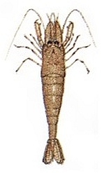 甲殻綱エビジャコ科のエビで,内湾の砂泥底にすむ。体長4.5cm。体はとくに頭胸甲が平らである。第1,2胸脚がはさみを形成しているが,第1胸脚は独特な鎌状,第2胸脚は著しく細い。褐色ないし黒褐色であるが,環境によって容易に体色を変えることができる。産卵期は11~7月で,2月下旬から4月下旬が盛期である。生活史には長期世代(夏世代)と短期世代(冬世代)がある。長期世代は2月下旬から4月下旬に産卵されたもので,10月中旬までに中型エビに成長し,その一部が産卵するが,翌年2月上旬まで急速に成長して大型エビになり,産卵,死亡する寿命1年の群れである。中型エビが秋に産卵したものが翌年の4月中旬までに中型エビに成長し,4月下旬から7月にかけて産卵,死亡する半年余の寿命をもつものが短期世代である。日本各地から韓国,中国沿岸に多産し,中型,大型ともにつくだ煮として利用。