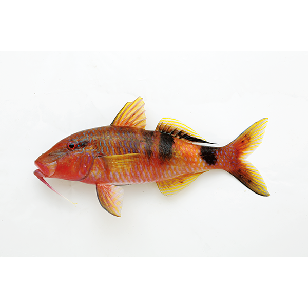 硬骨魚綱スズキ目ヒメジ科に属する海水魚。日本海側では山口県、福岡県、天草(あまくさ)諸島、太平洋側では八丈島、小笠原(おがさわら)諸島、千葉県から九州南岸、屋久島(やくしま)、南西諸島、台湾など太平洋、インド洋に分布する。和名は小笠原諸島での呼び名で、下顎(かがく)のひげに由来する。体は伸長し側扁(そくへん)する。体高は背びれの起部付近でもっとも高く、体長のおよそ28~30%。頭の外郭は緩く傾斜する。頭長は体長のおよそ32~33%。両眼間隔幅は広くて、頭長の39~46%。口は小さく、上顎の後端は吻長(ふんちょう)の中間点よりやや後方に達する。上下両顎に1列の互いによく離れた円錐歯(えんすいし)がある。鋤骨(じょこつ)(頭蓋(とうがい)床の最前端にある骨)と口蓋骨に歯がない。下顎の前端付近に1対(つい)の細長いひげがあり、前鰓蓋骨(ぜんさいがいこつ)の後縁を越え、まれに主鰓蓋骨の後縁に達するものもいる。鰓耙(さいは)は多くて、上枝に6~10本、下枝に29~32本が並ぶ。鱗(うろこ)は大きく、側線鱗(りん)数は27~30枚。背びれはよく離れた2基で、8棘(きょく)9軟条、第1棘はきわめて短い。臀(しり)びれは7軟条で、前縁長は基底長より短い。第2背びれと臀びれの最後の軟条はその前の軟条よりも著しく長い。尾びれの後縁は深く二叉(にさ)する。体色は瞬時に変えることができるが、普通は背側面では褐色~赤色、腹側面では赤色~白桃色のものが多い。第2背びれの下と尾柄(びへい)部に幅の広い暗色斑(はん)があり、また第1背びれと第2背びれの間、第1背びれの下および目を横切る不鮮明な暗色帯がある。ひげは淡黄色。第2背びれと臀びれの縁辺に黄色と淡青色の線が走る。水深160メートル以浅のサンゴ礁域やその周辺の砂底や礫底(れきてい)に生息する。ひげを使って砂の上や中を探り、カニ類、エビ類などの甲殻類のほかに、小魚、タコ類、巻貝なども食べる。全長30センチメートルに達する。おもに釣り、定置網、刺網(さしあみ)などで漁獲される。白身魚で、煮つけ、揚げ物、刺身などの総菜にする。