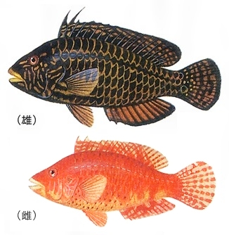 解説 / 藻場のある浅い岩礁にすみ、主に底の小動物を食べます。繁殖期のオスは、体色が黒ずみます。