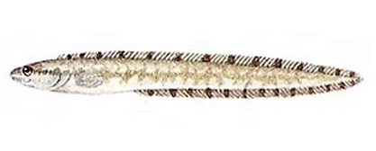 硬骨魚綱スズキ目タウエガジ科に属する海水魚。和歌山県以北の太平洋、石川県以北の日本海、北海道全域に分布する。タウエガジ科のなかでも、体は細長く扁平(へんぺい)で、背びれと臀(しり)びれが尾びれと連続するという特徴をもつグループに属する。眼上に皮弁がなく、体側に網目状模様があり、背びれと臀びれに多数の三角形状の斑紋(はんもん)があり、臀びれは背びれの第18棘(きょく)付近下から始まることなどの特徴で近縁の仲間と区別できる。沿岸の藻場(もば)にすみ、体を海藻に巻き付ける。全長7センチメートルぐらいにしかならない小形種。所属がゲンゲ科からタウエガジ科へ移された。