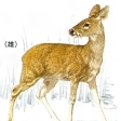偶蹄目シカ科。体長 75~97cm,体高約 50cm。雄の上犬歯が長く,牙状なのでその名がある。この歯は下顎の下方にまで達している。川岸のアシ原や低木地帯に小さな群れをつくってすむ。日中活動性。朝鮮半島,中国に分布する。