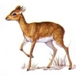 …体は灰褐色,赤褐色,オリーブ色などで,すべてアフリカ産。ごく小さくほぼウサギ大のローヤルアンテロープNeotragus pygmaeus,眼下腺の麝香臭がきわめて強いジャコウアンテロープ(スニ)N.moschatus,やぶにすみ木の葉を主食とするキルクディクディクMadoqua kirkii,岩場にすみ6mも跳びはねるクリップスプリンガーOreotragus oreotragus,なわばりに強い執着を示すオリビOurebia ourebi,行動圏の各所に糞で目印をつけるといわれるスタインボックRaphicerus campestris,荒れた岩山にすみ,一つの丘に一つの群れしか見られないといわれるベイラDorcatragus megalotisなど6属13種がある。 なお,レイヨウ類のうち,とくに姿の美しい砂漠にすむガゼル類約15種を除いた残りだけをアンテロープと呼ぶことがある。…