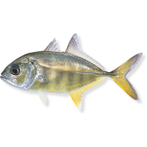 硬骨魚綱スズキ目アジ科アジ亜科に属する海水魚。日本海側では若狭(わかさ)湾以南、太平洋岸では津軽(つがる)海峡以南の各地、小笠原(おがさわら)諸島、南西諸島、朝鮮半島南岸、福建(ふっけん)省、広東(カントン)省などの中国沿岸、台湾、南シナ海、ハワイ諸島など太平洋、インド洋に広く分布する。体は側扁(そくへん)し、幼魚では長卵形であるが、成魚では楕円(だえん)形になる。頭部の背縁は緩く湾曲する。吻(ふん)はややとがり、吻長は眼径より長い。目に脂瞼(しけん)(目の周囲や表面を覆っている透明の膜)があり、瞳孔(どうこう)の後縁を覆う。上顎(じょうがく)の後端は目の後縁を越えて後方に達する。上顎には外側に1列の強い犬歯状の歯がまばらに並び、内側に小さい絨毛(じゅうもう)状の歯帯があり、歯帯の前端は幅が広くなっている。下顎には円錐歯(えんすいし)が1列に並ぶ。鰓耙(さいは)は上枝に6~8本、下枝に15~19本。第1背びれは8棘(きょく)、第2背びれは1棘19~22軟条。臀(しり)びれは1棘14~17軟条。臀びれの前方に2本の遊離棘がある。第2背びれと臀びれの前部の軟条は鎌(かま)状に伸びる。側線はやや強く湾曲し、第2背びれの第6、7軟条下から体側の中央を後方に向かって直走する。稜鱗(りょうりん)(鋭い突起を備えた肥大した鱗(うろこ)。一般には「ぜんご」「ぜいご」ともいう)は側線の直走部の全長にわたって発達し、27~36枚。胸部は完全に鱗で覆われる。成魚では体色は背方が暗黄緑色~青灰色で、腹方は銀白色。鰓蓋(さいがい)の上縁に瞳孔の3分の1、あるいは幼魚ではそれ以下の黒斑(こくはん)がある。稜鱗は暗色~黒色。幼魚や若魚では体は金色~銀色で体側に明瞭(めいりょう)な6本の黒色横帯がある。成魚はサンゴ礁域に単独あるいは群れですみ、おもに魚類や甲殻類を捕食する。幼魚は沿岸域や汽水域に多く、ときには河口付近にまで達する。最大全長90センチメートルほどになる。