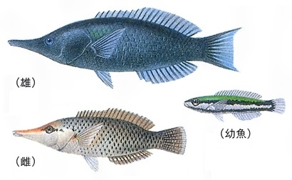 硬骨魚綱スズキ目ベラ科に属する海水魚。和歌山県以南の南日本から西部太平洋、インド洋にかけて分布する。成魚の吻(ふん)は著しく長くて管状。雌の体は淡褐色で各鱗(りん)に1個の暗色斑(はん)があるが、雄は濃緑色で胸部に1条の黄色帯をもつ。全長30センチメートル。幼魚は吻が短く体側に2条の黒色縦帯があり、両帯の間は純白色、背部は淡緑色である。サンゴ礁にすみ、動作は非常にすばやい。とがった口でサンゴの間に潜む小動物を捕食する。