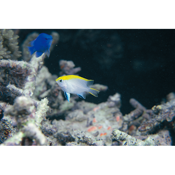 解説 / やや内湾のサンゴ礁にすみ、雑食性です。成魚と幼魚の体色がまったくちがいます。