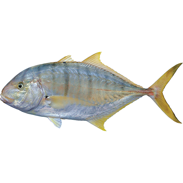 硬骨魚綱スズキ目アジ科アジ亜科に属する海水魚。日本では鹿児島県、沖縄本島以南、世界では台湾、トンキン湾、ハワイ諸島など太平洋とインド洋に分布する。体は長卵円形で側扁(そくへん)し、外郭は背側のほうが腹側よりも強く湾曲する。吻(ふん)は眼径より著しく長い。目は小さく、脂瞼(しけん)(目の周囲や表面を覆っている透明の膜)は未発達。口を突出させることができる。上顎(じょうがく)の後端は目の前縁下に達する。上下両顎には歯がないが、10センチメートル以下の若魚には下顎に弱いわずかな歯がある。鰓耙(さいは)は上枝に7~9本、下枝に19~22本。背びれは2基で、第1背びれは7棘(きょく)、第2背びれは1棘18~20軟条。臀(しり)びれの前方に2本の遊離棘があり、その後ろに1棘15~17軟条がある。第2背びれと臀びれの前の軟条はほかより長い。側線の前部は緩く湾曲し、第2背びれの第9~14軟条下で終わる。湾曲部の長さは直走部の長さより長いか、あるいはわずかに短い。側線の直走部の前部に17~24枚の鱗(うろこ)と後部に17~26枚の稜鱗(りょうりん)(鋭い突起を備えた肥大した鱗。一般には「ぜんご」「ぜいご」ともいう)がある。胸部は完全に鱗で覆われる。体色は幼魚や若魚では黄色で、体側に10本の黒色の横帯があり、幅の広いものと狭いものが交互に並ぶ。第1帯は目を横切り、第2帯は鰓孔を通り、第10帯は背びれと臀びれの後端の間にある。成魚では体色は背部で青黄色、腹部で銀黄色になり、黒色の横帯は薄くなる。鰓蓋(さいがい)の上部に黒斑(こくはん)が1個ある。最大体長は約1.2メートルになる。成魚は内湾、サンゴ礁、岩礁、礁湖などの沿岸域の底層にすみ、口を伸出させて砂中にいる魚類や、礁のすきまにいる甲殻類、軟体類などを食べる。稚魚はクラゲ類につき、幼魚や若魚はサメ類やハタ類などの大形魚に随伴して泳いでいることが多いが、これは捕食者から身を守るためと考えられている。