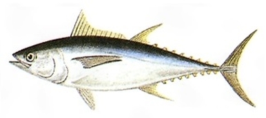 …日本ではふつうマグロとは大型のサバ型魚類で刺身として生食に供されるものを指すことが多く,このためカジキ類をもカジキマグロと称することがある。分類学上のマグロ属はビンナガ(ビンチョウ)Thunnus alalunga(英名albacore)(イラスト),クロマグロ(ホンマグロ,シビ,ハツ)T.thynnus(英名bluefin tuna)(イラスト),ミナミマグロ(豪州マグロ)T.maccoyii(英名southern bluefin tuna),メバチT.obesus(英名bigeye tuna),キハダ(キワダ)T.albacares(英名yellowfin tuna)(イラスト),タイセイヨウマグロT.atlanticus(英名blackfin tuna),コシナガT.tonggol(英名longtail tuna)の7種を含む。このうち,ビンナガ,メバチ,キハダの3種は世界の熱帯から温帯にかけての広い範囲に生息する。…