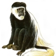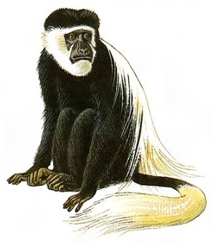 哺乳(ほにゅう)綱霊長目オナガザル科コロブス亜科コロブス属に含まれる動物の総称。ゲレザともいう。この属Colobusはすべてアフリカ産で、4種3グループに分類される。クロシロコロブス(アンゴラコロブスC. angolensisとアビシニアコロブスC. abyssinicusの2種)とアカコロブスC. badiusはアフリカ大陸を赤道に沿って東西に横断するように広く分布し、オリーブコロブスC. verusはガーナからギニアに分布する。いずれも樹上性で、熱帯多雨林、山地林、飛び石状の森林などにすみ、木の葉を主食とする。体長50~60センチメートル、尾長60~80センチメートル。手の親指は退化して痕跡(こんせき)を残すのみであるが、これはコロブス属に共通の特徴である。コロブス亜科共通の特徴として、その胃は大形でいくつかにくびれ、セルロース分解酵素を分泌すること、頬袋(ほおぶくろ)をもたないことなどがあげられる。クロシロコロブスは20頭程度の群れをつくり、アカコロブスは100頭にも達する大型の群れをつくる。クロシロコロブスは比較的飼育が容易であるが、他は困難で、動物園での出産記録はない。