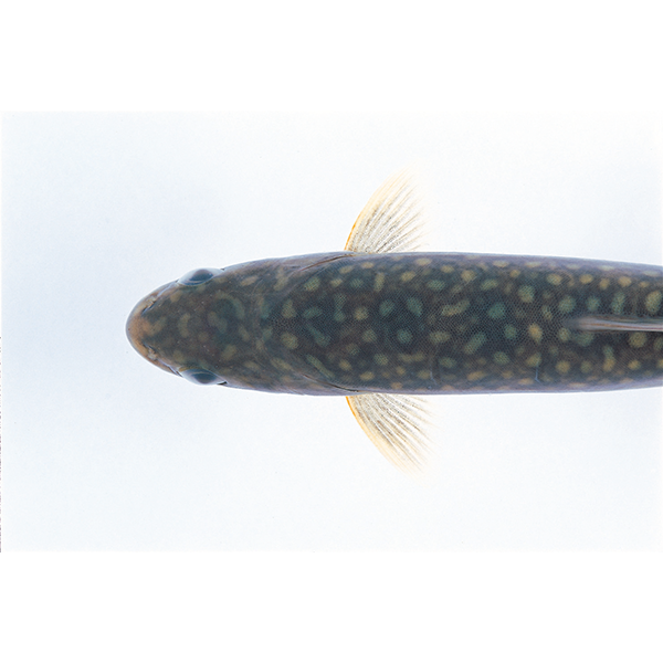 解説 / 体には大きな約10個のパーマークのほか、白色点はひとみより大きいこと、頭の上のものは目の前、口の周辺にまであることが特ちょうです。