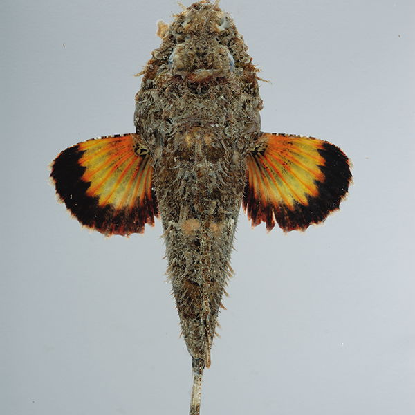 硬骨魚綱カサゴ目フサカサゴ科に属する海水魚。南日本から東シナ海、台湾、南シナ海にかけて分布する。背びれの始部は著しく隆起する。後頭部は深くくぼむ。体表にたくさんの皮弁があり、成長につれて多くなる。体色は黄色から赤褐色と変化に富む。胸びれの内側の縁辺近くに1本の黒色の帯がある。尾びれの基部と後部に明瞭な黒褐色の横帯があり、縁辺は淡色。水深70メートル以浅のサンゴ礁、岩礁域、転石帯などにすみ、甲殻類、魚類などを食べる。体長20センチメートルぐらいになる。ひれの棘(とげ)に猛毒があり、刺されると危険である。煮付けなどにすると美味。
