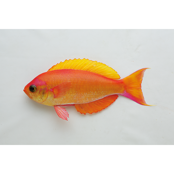硬骨魚綱スズキ目シキシマハナダイ科に属する海水魚。日本海側では秋田県から、太平洋側では相模(さがみ)湾から九州南岸まで、東シナ海、朝鮮半島南岸、済州島(さいしゅうとう)(韓国)、台湾南部、天皇海山列周辺海域に分布する。体は細長く側扁(そくへん)する。両眼間隔域はやや広く、強く盛り上がり、その幅は眼径より広い。上顎(じょうがく)の後端は瞳孔(どうこう)の前縁下に達する。上下両顎に1列の犬歯状の歯があり、下顎の後部でより大きい。上顎の前端に2対(つい)、下顎の前端に1対の犬歯があり、その後ろに小さい歯の幅の狭い歯帯がある。鋤骨(じょこつ)(頭蓋(とうがい)床の最前端にある骨)と口蓋骨に小さい歯があるが、舌上にはない。前鰓蓋骨(ぜんさいがいこつ)は丸くて、棘(きょく)がない。主鰓蓋骨に2本の棘があるが、間鰓蓋骨と下鰓蓋骨には棘がない。鱗(うろこ)はやや大きい櫛鱗(しつりん)で覆われるが、口唇と喉部(こうぶ)は無鱗。側線は鰓孔の上端から始まり、背びれ第3棘に向かって急上昇し、その後、体の背縁近くを走り、尾柄(びへい)の背面で終わる。背びれと臀(しり)びれに欠刻(切れ込み)がない。背びれ棘は細長く、最後の棘はもっとも長い。臀びれ第2棘は長くて強い。胸びれは短く、肛門(こうもん)の上方に達しない。腹びれは臀びれの第2棘の下に達する。尾びれは深く湾入し、両葉の1~2軟条は糸状に伸長する。体の背側面は桃紅色で、腹側は黄色みを帯びる。背びれ、臀びれおよび尾びれの中央部は黄色。水深45~320メートルの沿岸の岩礁域、大陸棚縁辺、海山にすみ、おもに甲殻類を食べる。最大体長は20センチメートル。釣り、底引網、巻網などで漁獲される。白身で水炊きにすると美味。練り製品の原料にもされる。本種は背びれ棘が11本であること、側線が背びれの基底近くを走り、背びれの基底の後端または尾柄の背側面まで伸びることなどで、ハタ科とは別のシキシマハナダイ科に含まれる。