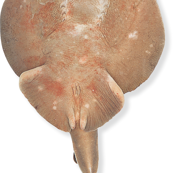 解説 / 大陸だなの砂泥底にもぐってすみます。1対の電気器官から50~60Vの電気を放ち、底にすむ小動物をしびれさせて食べます。胎生。