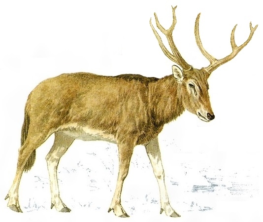 偶蹄目シカ科。体高約 1.2m,体重 150~200kg。体毛は,夏は赤褐色,冬は灰褐色で毛がやや長くなる。背に黒色線が1本走る。角は 80cmほどもあり,特殊な形に枝分れしている。蹄 (ひづめ) はウシに,頭はウマに,角はシカに,からだつきはロバにそれぞれ似ているが,そのどれでもないという意味でシフゾウ (四不像) と名づけられた。 1865年にフランスの宣教師 A.ダビッド神父が北京南苑で発見し,その後持出され,イギリスのベドフォード卿の庭園で飼育されて数を増したが,北京のものは絶滅してしまった。野生のものの分布は不明。現在すべての個体が世界各地の動物園で飼育されており,その数は約 800頭である。