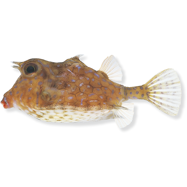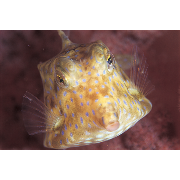 解説 / 体は、前から見ると五角形に見えます。背中に大きなとげが1本あります。岩礁やサンゴ礁にすみます。夏の夕ぐれにペアで産卵します。
