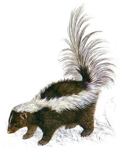 …地中に掘った穴や人家の床下などをすみ家とし,交尾期は,北アメリカではおもに2~3月,南アメリカではおもに1月。妊娠期間は種によって大きく異なり,マダラスカンクでは120日,シマスカンクでは61~64日,ブタバナスカンクでは42日である。雌は4~10子を生む。…