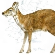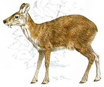 偶蹄目シカ科。体長 1m,体高 60cm。雌雄ともに角をもたない。背が丸く,原始的なシカである。上犬歯が発達し,牙状に下方に突き出ている。雄は腹部に麝香 (じゃこう) 腺をもち,繁殖期に強い臭いを出す。この麝香腺から分泌される分泌液は麝香の原料とされる。単独または1対で標高 2000~3000mの高地の森林にすむ。早朝または夕刻に活動し,草やコケ,地衣類などを食べる。中央アジア,中国東北地方,朝鮮半島,シベリアに分布する。