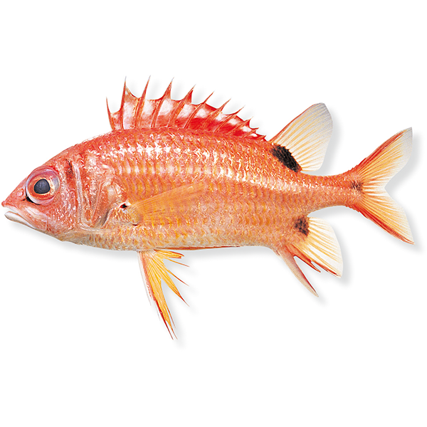 硬骨魚綱キンメダイ目イットウダイ科に属する海水魚。前鰓蓋骨(ぜんさいがいこつ)の下端の角部に強くて長い1棘(きょく)があり、臀(しり)びれの軟条は10本以下であることでイットウダイ亜科に属す。和名は体の黒斑(こくはん)と白色の鹿の子(かのこ)模様に由来する。八丈島、小笠原(おがさわら)諸島、紀伊半島南部以南、台湾南部、インド洋、西太平洋に分布する。体は側扁(そくへん)して体高はやや高く、硬くて粗雑な鱗(うろこ)で覆われる。涙骨(るいこつ)(上顎(じょうがく)の上縁を覆う骨)の背縁に棘(とげ)がない。上顎の前端は下顎の前端よりも前に突出する。後鼻孔(こうびこう)の縁辺に小棘がある。側線鱗(そくせんりん)数は32~36枚、側線上方横列鱗(おうれつりん)数は2.5枚。体色は赤みがかった黄金(こがね)色で、目の後方の鰓蓋部に赤色の2縦帯がある。背びれと臀びれの軟条部の基底と尾びれの基底中央部に黒斑がある。背びれ棘部基底、尾びれの背腹縁辺、臀びれ棘部および腹びれ縁辺は濃赤色。胸びれの基部上端は黒い。全長は約25センチメートルになる。やや深いサンゴの群落域や岩礁域に生息し、夜間に活動し、甲殻類、魚類などを捕食する。釣りや刺網(さしあみ)で漁獲し、焼き魚などにするとおいしい。