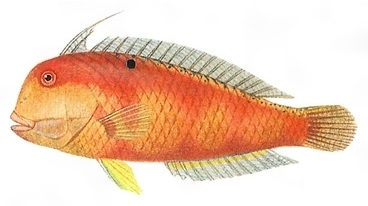 硬骨魚綱スズキ目ベラ科に属する海水魚。太平洋側は東京湾、日本海側は島根県以南の南日本、南シナ海、東インド諸島に分布する。体は著しく側扁(そくへん)し、背びれの第1と第2棘(きょく)が、その次の棘から離れているのが特徴。体の地色は淡紅色で、通常3、4条の幅広い暗赤色横帯がある。雌は背びれ第5棘の付け根に丸い紫黒色斑(はん)をもつが、雄はこれを欠く。全長30センチメートル。幼魚は背びれ前部の遊離棘が著しく長く、体色は淡褐色から黒褐色まで変異が多い。やや深い岩礁の周辺の砂泥底にすみ、肉食性。肉質は柔らかいが、ベラ類のなかでは味がよいほうである。
