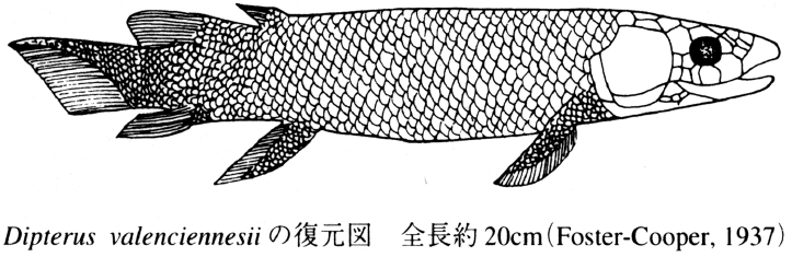 硬骨魚綱肉鰭亜綱肺魚目ディプテルス科の模式属。デボン紀の代表的な肺魚。ヨーロッパ・北米・アジア北部・オーストラリアから化石が発見されている。二基の背鰭は葉状で一基の臀鰭を有する。尾鰭は異尾。体は薄い円鱗で覆われ,鱗と皮骨はコスミン層で覆われる。すでに典型的な肺魚型の咀嚼