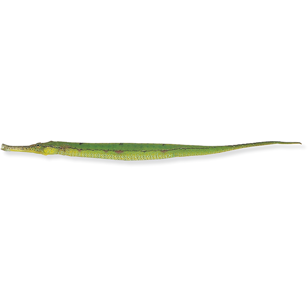 硬骨魚綱トゲウオ目ヨウジウオ科に属する海水魚。兵庫県但馬(たじま)以南の日本海と茨城県以南の太平洋沿岸、太平洋、インド洋に分布する。尾びれがないことではタツノオトシゴの仲間のようであるが、体が細長く、頭部と躯幹(くかん)部の体軸は直角に交わらないことではヨウジウオ類である。躯幹部の断面は縦扁(じゅうへん)した台形、その腹面は幅が広くて平坦(へいたん)。尾部の後半は細長くて、先端はわずかに曲がる。吻(ふん)は側扁(そくへん)し長い。雄には育児嚢(のう)があるが、ほとんど発達せず、卵は柔らかい皮膚状の膜に産み付けられて露出している。体色は緑色~褐色などで、著しく変異があり、不規則形の白色~暗色斑(はん)がある。水深10メートル以浅の藻場でみられ、流れ藻に尾で巻き付いていることがある。稚魚は外洋の浮遊物のなかから見つかることがある。体長は30センチメートルほどになる。姿がおもしろく、水族館で飼育される。