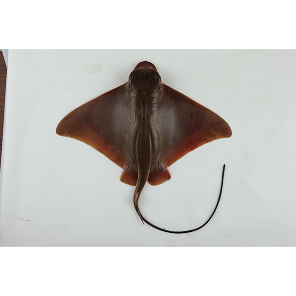 トビエイ目トビエイ科の海水魚。全長 1.5mに達する大型のエイ。胸鰭が広く,全体に菱形で,頭部がやや突き出る。尾部は細長くむち状で,鋸歯状のとげがあり,これに刺されると非常に痛い。体表はなめらかで,背面は褐色,腹面は白色。本州から南シナ海の沿岸域に生息する。