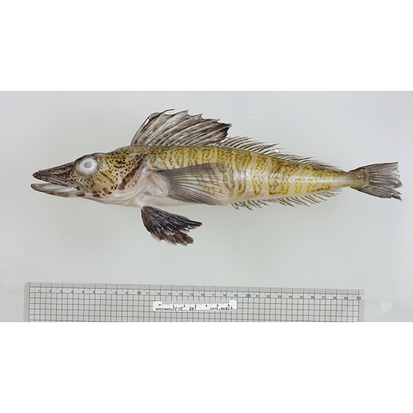 解説 / 敵が近づくと体を丸めてひれを立て、口をあけてえらぶたのとげを立てる行動が観察されています。水深約5~650mの岩礁域から砂泥底にすみます。
