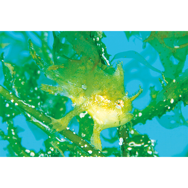 硬骨魚綱アンコウ目カエルアンコウ科に属する海水魚。北海道南部以南の日本各地、東部太平洋を除く世界の温帯・熱帯海域に分布する。体は側扁(そくへん)し、胸びれや腹びれの基部が腕状になり、これで体を支える。体表には微細な粒状物が密生するが、固い棘(とげ)はなく、多数の短い皮弁が散在する。吻(ふん)上に短い竿が出て、先端に多数の皮弁があり、ルアーのような役割をする。全長約20センチメートル。体色を周囲の色合いに似せる習性がある。黒みを帯びたものをクロハナオコゼ、黄色がかったものをハナオコゼともいう。産卵期は5~8月。腹びれを使って流れ藻について海面を漂い、流れ藻につくプランクトンを食べる。食用にはしないが、観賞用に水族館で飼育されている。