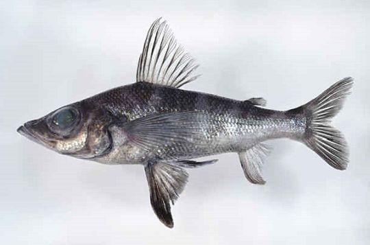 硬骨魚綱ヒメ目アオメエソ科に属する海水魚。熊野灘(くまのなだ)、土佐湾、奄美(あまみ)大島近海、九州・パラオ海嶺(かいれい)に分布する。体は細長く、胴部では円筒形で、尾部では側扁(そくへん)する。眼窩(がんか)径は吻長(ふんちょう)よりはるかに大きい。両眼間隔域は平坦(へいたん)。口は斜めに開き、上顎(じょうがく)の後端は瞳孔(どうこう)の前縁よりも後方に達する。下顎の先端は上顎より前に出る。上下両顎の歯は小さくて、狭い歯帯を形成する。下顎前部に外歯叢(がいしそう)(密集した小さい歯のかたまり)がある。鋤骨(じょこつ)(頭蓋(とうがい)床の最前端にある骨)の外縁、口蓋骨、舌上に歯帯がある。体は円鱗(えんりん)で覆われ、吻部と上下両顎は無鱗。側線鱗数は52~53枚。背びれは高く、体の前3分の1よりかなり後方にあり、11軟条で、前の2軟条は不分枝。脂(あぶら)びれ(背びれの後方にある1個の肉質の小さいひれ)は臀(しり)びれの第1軟条の上方にある。胸びれの先端はとがり、背びれ基底(付け根の部分)の後端を越える。腹びれ起部は背びれ第3軟条下方にある。腹びれは9軟条からなり、第1軟条を除いて分岐し、第1~4軟条は伸長して、先端は丸い。体は背側面では青黒色、腹側面では銀白色。腹びれ上方に幅の広い暗色斑紋(はんもん)、背びれと脂びれの中間、脂びれの下方および尾びれ基底部の背面にもやや狭い暗色の斑紋がある。口腔(こうこう)内は黒い。水深500~700メートルの大陸棚斜面の上部にすみ、底引網、釣りなどで漁獲される。おもに底生の小形の無脊椎(むせきつい)動物を食べる。最大体長は30センチメートルに達する。本種は日本の近海から6個体(体長19.2~30.0センチメートル)が報告されている。また、インターネット上では八丈島、駿河(するが)湾などから捕獲されたとの記録が見られるが、標本は明確にされていない。