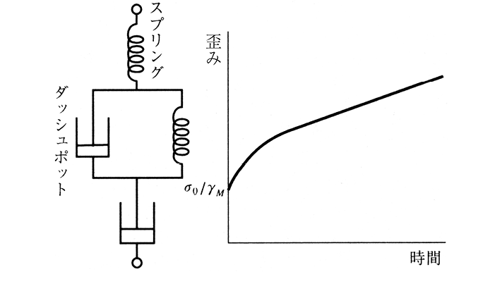 物体のレオロジーモデルの一つ。図に示すようにVoigt物体とMaxwell物体との直列結合で表現され,岩石のクリープ現象を説明するためによく用いられる。すなわち,Voigtの方程式とMaxwellの方程式を組み合わせ,一定応力σ=σ0を加えてそのままに保ったとすると,歪みεと時間tとの関係は,ε=σ0[1/γM+t/ηM+1/γV{1-exp(-γV/ηV・t)}]で表される(γM,ηMおよびγV,ηVはそれぞれMaxwell物体およびVoigt物体の弾性率および粘性率)。この式はt=0ではε=σ0/γMなる瞬間的弾性変形を表し,tがかなり大きくなるとexp(-γV/ηV・t)は0に近くなるからほぼ歪み速度一定の二次クリープを表し,tが小さいうちは歪み速度がしだいに減少する一次クリープを表すことになる。