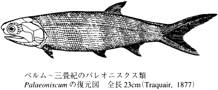 硬骨魚綱条鰭亜綱軟質下綱の最も原始的な一群(目)。多様性に富むグループで,シルル紀に出現し,石炭~三畳紀に繁栄したが,白亜紀前期に絶滅。背鰭と臀鰭はそれぞれ1基で,尾鰭は異尾,鱗はガノイン鱗でコスミン層はない。原始的な種類では,目は大きく前方にあり,異尾は強い。また,頰を構成する骨(主上顎骨・前鰓蓋骨・亜眼下骨)が骨板状にしっかりと結合する。より進化したグループでは,頰を形成する骨は関節がより自由になり,口腔を拡張しやすい構造になっている。