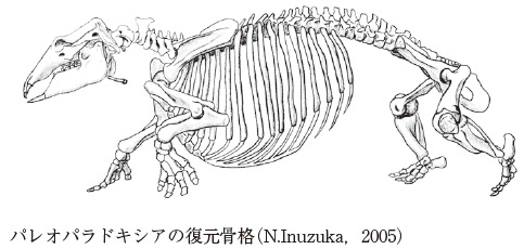中新世中期にいて絶滅した哺乳類の1属。ウシぐらいの大きさで水陸両生の生活をして,主として北太平洋の海岸地帯にいたものと思われ,現在のところ1種P.tabataiが知られる。日本および北アメリカ西海岸の各地で化石が発見されているが,岐阜県土岐市,埼玉県秩父市,カリフォルニアのスタンフォード大学構内では全骨格が発掘され,岡山県津山市でもまとまった骨格が発見されている。頭骨は低平,がんじょうな四肢骨はからだの側方へのび,胸に板状の胸骨が発達するのが特徴で,臼歯も特異な形をしている。デスモスチルスとともに束柱目をつくるが,デスモスチルスと違って,きば状でなく,へら状の切歯があり,低歯冠で歯根の長い臼歯をもち,特殊化はあまり進んでいない。マングローブ林のあるような温暖な浅海域の海岸地帯にすみ,遊泳したり,陸を歩いたりしていたと思われる。学名はギリシア語の〈古代の〉という意味のパライオスpalaiosと,〈奇妙な〉とか〈予想とはちがった〉という意味のパラドクソスparadoxosとに由来。