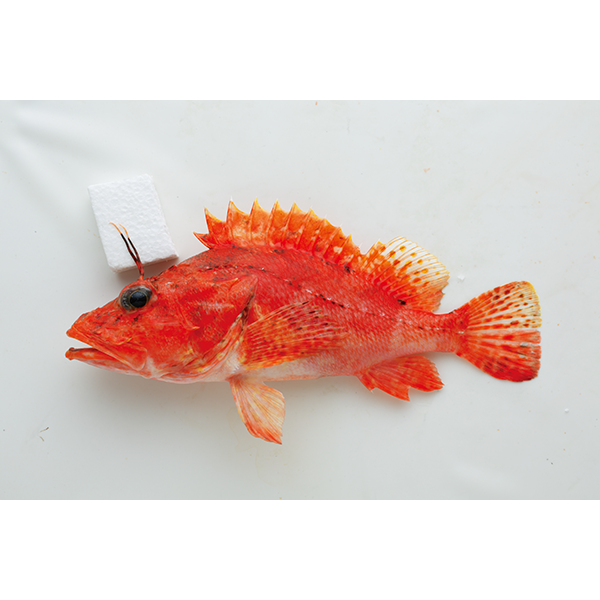 硬骨魚綱カサゴ目フサカサゴ科に属する海水魚。東京以南の日本各地、西部太平洋、インド洋、ハワイ諸島に分布する。頭は大きく、目は小さく、吻(ふん)は長いフサカサゴの仲間で、目の上から長い円筒形の皮弁を備えるのがこの種の特徴である。しかし、なかには皮弁がない個体もみられる。胸びれのすべての軟条が不分枝で、下部の6~8本は太い。頭部背面には多数の棘(とげ)を備える。両眼の間は狭くて、深くくぼむ。体は赤橙(せきとう)色で体の背側面に4本の不明瞭な暗色横帯がある。水深80~650メートルの大陸棚縁辺、海山にすむ。体長は45センチメートルほどになる。煮付けにすると美味。