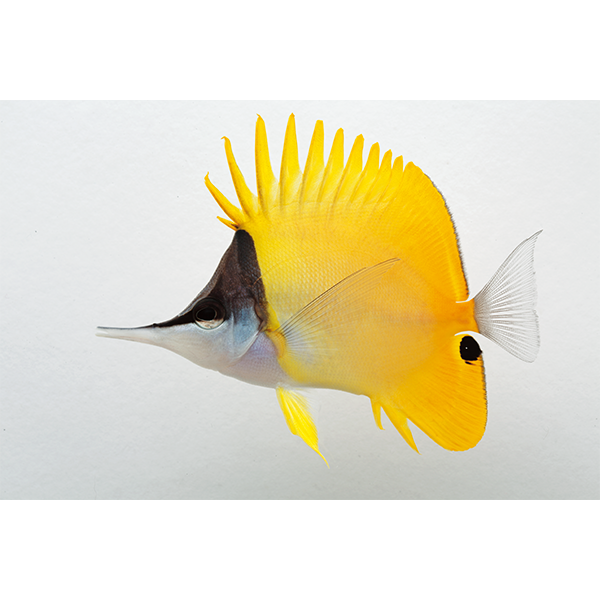 硬骨魚綱スズキ目チョウチョウウオ科に属する海水魚。相模(さがみ)湾以南から東シナ海に分布。体は卵形で側扁(そくへん)し、長い管状の口と発達した背びれ棘(きょく)が特徴。全長約20センチメートル。体は橙黄(とうこう)色で頭部は黒い。岩礁域に数尾の小群で生活し、くぼみにいる際は、腹面を岩盤に近づけ定位するので、天井付近では天地を逆に泳ぐ。水槽中では水面から口で水を射出し、背びれ棘を防御に用いる。底生の小動物を食べる。全体的に風変わりな形態と、美しい体色から観賞魚として飼育される。
