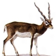 哺乳(ほにゅう)綱偶蹄(ぐうてい)目ウシ科の動物。インドレイヨウともいう。インド半島に分布し、開けた草原にある低木林に生息する。肩高70~85センチメートル、体重36キログラム。角(つの)は雄だけにあり、長さ45~70センチメートルで、細長くねじれる。体色は性や年齢によって異なり、体上面は雄で暗黒色、雌や幼獣は黄褐色を帯びる。普通、20~30頭の群れで生活し、群れには1頭の雄成獣がいるが、リーダーは老雌といわれる。日中は日陰で休み、朝夕におもに草を食べる。交尾期は2~3月で、妊娠期間約180日ののち、1産1~2子を産む。子は栗(くり)色であるが、雄は3年で黒くなる。2~3年で性的に成熟し、寿命は15年ほどである。