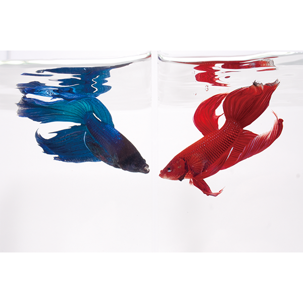 シャム闘魚(英名Siamese fighting fish)として知られるタイ原産のスズキ目キノボリウオ科の淡水魚。6cmほどの小型種。タイでは池,用水路などにふつうに見られ,ボウフラ退治に重要な役割を果たしていると考えられている。飼育の場合は人工餌料でもよいが,アカムシ,イトミミズなど生き餌を好む。雄はなわばりをもち,それをおかすものとは激しく闘うことで知られる。これを利用し古くからタイでは闘魚が盛んで,このための飼育がされてきた。稚魚(ちぎよ)のうちはいっしょに飼えるが,成熟すると雄は1尾ずつ別々の容器に飼わなければならない。いっしょにするとかみ合ってひれをぼろぼろにし,体を傷つけ合う。迷器(迷路器官)という空気呼吸器官を鰓室(さいしつ)上部にもつので,酸素不足には強い。雄が吹き出した泡で浮巣をつくり,雌に産卵させる習性はよく知られている。野生型は灰褐色か緑色で暗色帯があるだけだが,長い間に数多くの型がつくり出され,観賞魚として売られているものは緑色,輝青色,紅色,黒色ときわめて多彩であり,また,雄のひれはとくに長くのびている。雌は黄褐色で暗色の横縞がある。