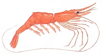 [Pandalus eous].エビ目エビ亜目コエビ下目トヤマエビ属のエビ.体長13cmほど.食用にする.