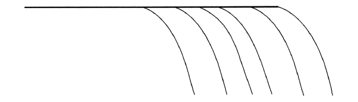 1)断層の末端部が放射状~扇状に分岐した構造。また,シャッターコーンの頂上から条線が放射状に広がる構造。2)剪断性の鉱脈から多数の分岐が片側に起こり,互いに平行な鉱脈群となった構造。生成機構は多重サイモイド構造と類似。馬尾