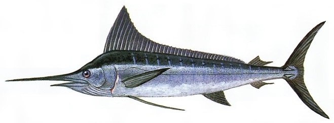 [Tetrapturus audax].スズキ目マカジキ科の海産魚.3.5mになる.食用にする.