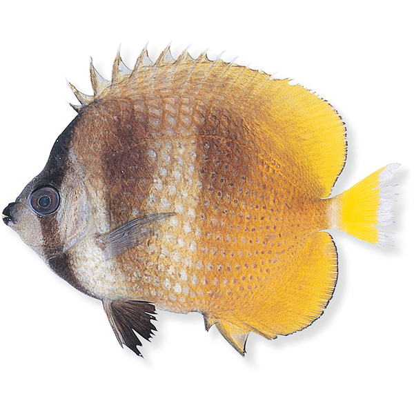 解説 / サンゴのポリプや岩場の小動物を食べます。稚魚の背びれには、黒い目玉もようはありません。