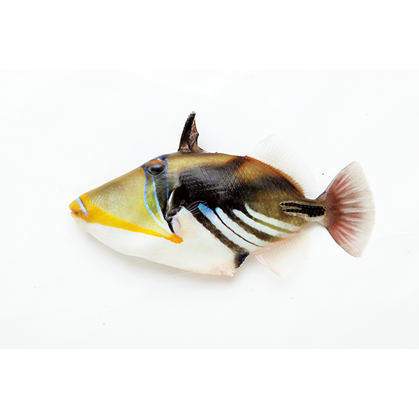 硬骨魚綱フグ目モンガラカワハギ科に属する海水魚。南日本の各地沿岸と西太平洋、インド洋の熱帯域に広く分布する。体は長い菱(ひし)形で側扁(そくへん)し、硬い板状鱗(りん)に覆われる。尾柄(びへい)部に三縦列をなす黒色の小棘(しょうきょく)がある。体の背側は灰黄色で腹側は白い。体側中央に大きな黒色斑(はん)があり背後方へ2本の黒色線が走る。体長20センチメートルに達する。サンゴ礁の底にすり鉢状の巣をつくって産卵する。卵は沈性粘着卵。サンゴ礁ではもっとも普通にみられる種で、肉は食べられるが市場価値は低い。観賞魚として熱帯魚愛好家の間で人気がある。