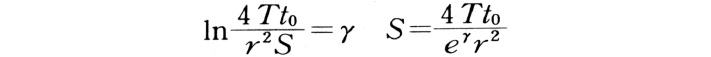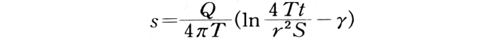 簡略化したタイスの公式を用いる揚水試験結果の解析法で,r(揚水井から観測井までの距離)が小さくt(揚水継続時間)が大きい(u<0.02)場合に適用できる。井戸関数をその展開式の最初の2項で近似すると,タイスの公式は次式のように簡略化される。