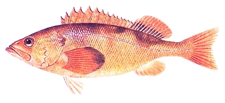 硬骨魚綱カサゴ目フサカサゴ科に属する海水魚。宮城県から千島列島(ちしまれっとう)に分布する。体は黄色みを帯びた暗緑色から暗赤色で、背側面に不鮮明な不定形の暗色斑(はん)がある。鼻棘(びきょく)はあるが頭の背面にまったく棘(とげ)はない。下顎(かがく)は上顎よりも著しく前方に飛び出し、下顎前端の歯の塊は上顎前端より突出する。背びれの棘は13本。水深250メートル近くにすむ。仔魚(しぎょ)を産む卵胎生魚。体長は40センチメートルになる。底引網、延縄(はえなわ)などで漁獲される。煮付けや焼き魚などにすると美味である。