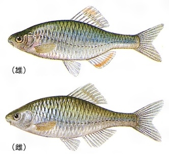 コイ目コイ科の淡水魚。体長 8cm。体は細長く,側扁し,小さい口のまわりに長いひげがある。体の背部は青みを帯びた淡褐色で,腹部へゆくにしたがって色淡く,銀白色になる。不明瞭な青藍色縦帯が体側後方の側線上を走る。北海道を除く日本の河川や湖沼,朝鮮半島西岸に分布し,マツカサガイに産卵する。特に冬季には雀焼などにして賞味される。