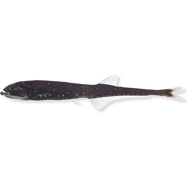 硬骨魚綱ワニトカゲギス目ヨコエソ科に属する海水魚。北海道から土佐湾までの太平洋沖、小笠原(おがさわら)諸島近海、沖縄舟状海盆(しゅうじょうかいぼん)(トラフ)、八重山(やえやま)諸島近海、九州・パラオ海嶺(かいれい)、台湾近海、南シナ海東北部など太平洋の亜熱帯から亜寒帯の海域に分布する。体は細長く側扁(そくへん)する。目の大きさはヨコエソ科のなかでは中くらいで、頭部の先端近くに位置する。口は大きく、下顎(かがく)の前端は上顎の前端より前に突出する。上顎の後端は目のはるか後方に達する。前上顎骨には4~5本の細長い歯がある。主上顎骨には13~15本の細長い歯が並び、それらの歯と歯の間にやや短い歯がある。下顎の歯は上顎の歯と似た歯列をもち、前端に外列歯がある。鰓弓(さいきゅう)には上枝に7~9本、下枝に11~13本の鰓耙(さいは)がある。肛門(こうもん)は臀(しり)びれ起部と腹びれ基底(付け根の部分)の中間よりもすこし後方に開く。下顎縫合部に1個の発光器(縫合発光器)がある。下顎腹面の前部には発光器(峡部発光器)がない。体の側面にある発光器は小さくて、よく離れている。そのうち、胸びれの基底上端付近から臀びれの上方にある発光器(体側発光器)は12~14個で、体の背縁近くにある発光器(背側発光器)は6個。尾柄(びへい)の下部に2個の発光腺(せん)があるが、上部にはない。背びれは臀びれの第7~第8軟条の上方から始まる。臀びれの基底長は長くて、背びれの基底長のおよそ4倍。脂(あぶら)びれ(背びれの後方にある1個の肉質の小さいひれ)はない。体は一様に黒褐色。ひれは淡色で、多くの黒点がある。水深100~500メートルの中深層にすみ、体長は最大でも12センチメートルくらいにしかならない小形種。雄性先熟型の性転換をし、1年間は雄として成熟して、体長7~9センチメートルで雌になる。