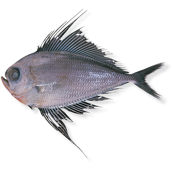 硬骨魚綱スズキ目シマガツオ科に属する海水魚。東北地方以南の太平洋、北海道以南の日本海、東シナ海、台湾、オーストラリア南東岸、ニュージーランドなどインド洋、太平洋に広く分布する。体は前端でもっとも高く、尾部後端で著しく低い長三角形で、強く側扁(そくへん)する。頭は小さく、背縁は直線状。吻(ふん)は短く、吻長は眼径のおよそ2分の1。目は大きく、両眼間隔域は緩く隆起する。口は斜めに開き、後端は目の中央部下に達する。下顎(かがく)は前方に突出する。上下両顎に短い円錐歯(えんすいし)が1~2列にまばらに並ぶ。鋤骨(じょこつ)(頭蓋(とうがい)床の最前端にある骨)と口蓋骨に歯がない。体側鱗(りん)は縦に細長い櫛鱗(しつりん)で、体軸に沿って9~10条の水平線が走る。縦列鱗数は47~51枚。背びれと臀(しり)びれの基部に鱗鞘(りんしょう)(基底付近を覆う鱗(うろこ))が発達する。体長20センチメートルくらいまでの個体では、背びれは目の後縁の上方のやや後ろから、臀びれは胸びれの基部下方から始まり、それぞれ尾びれ基底に達する。両ひれは大きい三角形状。成魚では両ひれは低くなり、前部の軟条がやや伸長する。背びれは47~49軟条、臀びれは36~40軟条。腹びれは小さく、胸びれの基底より前方から始まる。体色は暗褐色がかった銀白色。背びれ、臀びれ、尾びれおよび腹びれは濃黒色。胸びれの基底に黒斑(こくはん)がある。水深340メートル以浅の中層にすみ、魚類、イカ類、甲殻類などを食べる。きわめてまれに底引網でとれるが、海岸に漂着することもある。幼・稚魚はマグロ類に食べられていると考えられるが、生態はほとんどわかっていない。最大全長は40センチメートルほどになる。食用にはしない。