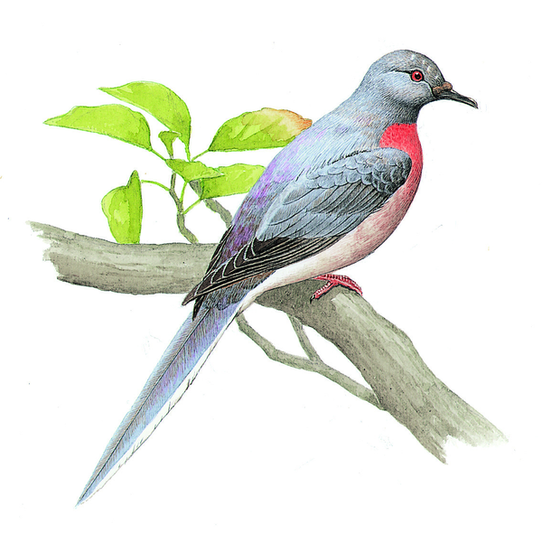 ハト目ハト科の鳥。カナダの中部,南部からルイジアナおよびフロリダにかけての北アメリカの東部で繁殖し,合衆国南東部の諸州で越冬していたが20世紀初めに絶滅した。全長約43cm。頭部と上面は青灰色で,肩羽に黒い縦斑があり,雨覆に黒い小斑がある。風切は灰黒色。下面は豊かなぶどう色,腹は白い。灰褐色の尾はくさび状で長い。くちばしは黒く,脚は赤色,虹彩は橙赤色。1腹1個の卵を産み,両親で2週間抱卵し,さらに2週間育雛(いくすう)した。餌は木の漿果(しようか)や草の種子などであった。