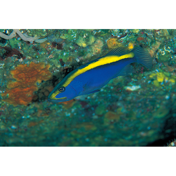 硬骨魚綱スズキ目ハタ科ハタ亜科キハッソク族に属する海水魚。伊豆諸島、小笠原(おがさわら)諸島、相模(さがみ)湾から高知県柏島(かしわじま)の太平洋沿岸、長崎県沖、済州島(さいしゅうとう)(韓国)、台湾南部などの西太平洋とインド洋に広く分布する。体は長楕円(ちょうだえん)形で著しく側扁(そくへん)する。口は大きく、その後縁は目の中央部下に達する。両眼間隔域は凸状。上下両顎(りょうがく)には幅広い絨毛(じゅうもう)状の歯帯、鋤骨(じょこつ)(頭蓋(とうがい)床の最前端にある骨)と口蓋骨歯には幅狭い絨毛状の歯帯がある。間鰓蓋骨(かんさいがいこつ)と下鰓蓋骨の縁辺に小棘(きょく)が露出する。鰓耙(さいは)は長くて、最長のものは鰓葉よりも長い。背びれは9棘12軟条で、棘部は軟条部よりもかなり短い。棘部の鰭膜(きまく)に皮褶(ひしゅう)(皮膚のしわ)がある。臀(しり)びれは3棘9軟条。胸びれと尾びれの後縁は円形。鱗(うろこ)は非常に小さい櫛鱗(しつりん)で、はがれにくい。両眼間隔域には鱗がない。側線は大きく湾曲する。体色は濃紫色で、下方でやや薄い。吻端(ふんたん)から目を通って背側を走り尾柄(びへい)に至る1本の黄色縦帯があり、さらに前端から上顎の上縁に沿って後方へ伸びる分枝がある。すべてのひれは暗色。水深10~100メートルの沿岸の岩礁にすむ。全長40センチメートルに達する。観賞魚として水族館で飼育されるが、皮膚には毒腺(どくせん)があり、刺激を与えるとグラミスチンgrammistinを含む毒液を出すので、取り扱うときには注意が必要である。肉は不味である。本種は背びれ棘が9本あること、臀びれ棘が3本あること、間鰓蓋骨と下鰓蓋骨に小棘があること、背びれ棘部の鰭膜に皮褶があること、黄色の縦帯があることなどで本亜科の他種と容易に区別できる。